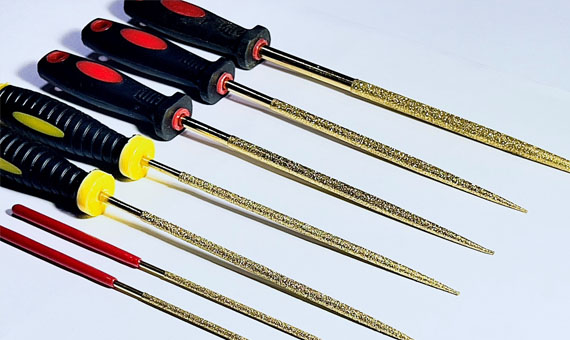 | Diamond files are offered in shapes like Flat, Round, Rectangular, Triangle & Half Round. These files are used for re-cutting & lapping of Tungsten Carbide Dies. The use of Diamond files reduces the time and effort needed for re-cutting and lapping of dies. Many wire manufacturers re-cut and use existing carbide dies in-house with the help of these files. |