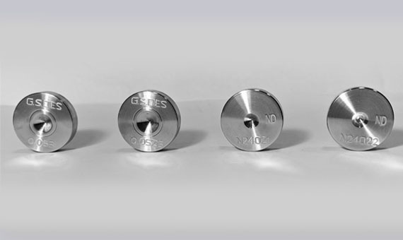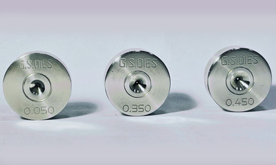 Natural monocrystalline diamond is the hardest known material, almost twice as hard as the cubic boron nitride. Approximately 6% of the rough natural diamond is suitable for the production of drawing die. Simultaneously, considerable demand is needed to select quality, careful artistry to make the die. We manufacture diamond dies from a size range of 0.050mm to 1.000mm.
